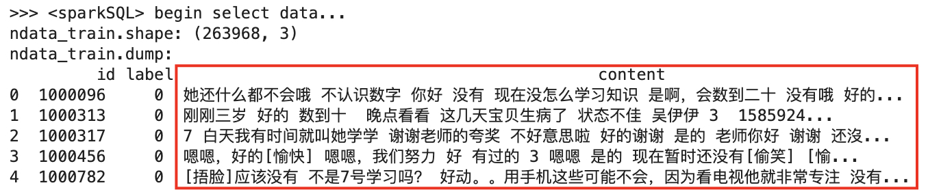 输入数据:user_id(用户id), content(原始文本), label(标签)